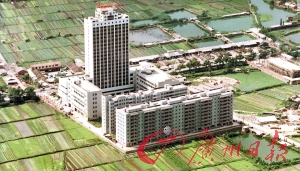 1994年,国防大厦屹立在石牌田野中。(天河区志办公室供图)