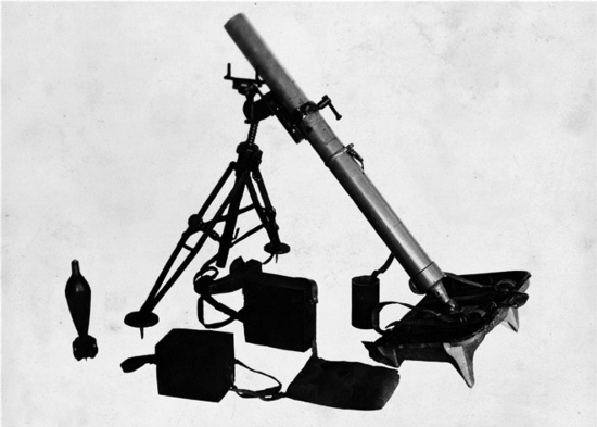 ④金陵兵工厂造的八二迫击炮、炮弹。当时国民革命军主力部队,普遍装备的是二十年代八二迫击炮。该炮就由金陵兵工厂生产。