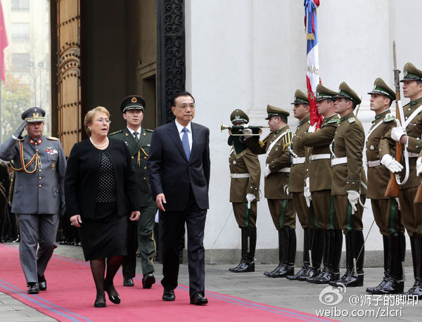 智利总统用"两场检阅仪式"欢迎李克强总理(高清组图)