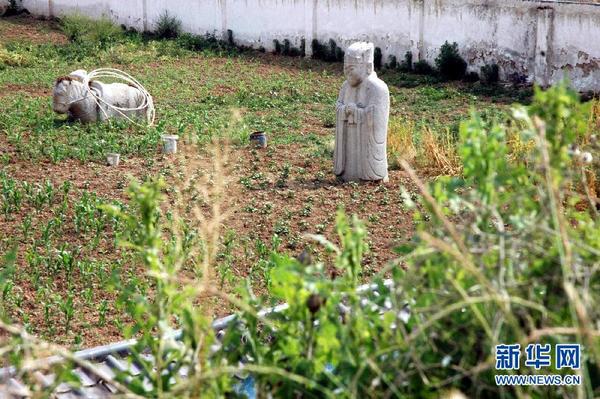 围墙内的明第十代秦王——宣王朱怀埢墓前神道周围被村民种上了农作物(5月26日摄)。位于西安长安区的全国重点文物保护单位明秦王陵园,近年来因缺乏监管和保护,陵园重点保护区内的部分秦王墓前神道周围被当地村民开垦成菜地,种上了大葱、黄瓜和辣椒等农作物,使这座昔日的皇家陵园变成了菜园。明秦王陵园为明13代秦藩王家族墓地,埋葬着明240年间镇守西安府的13位秦王,其墓葬前神道两旁至今保存有精美的华表、石蹲虎、石羊、石麒麟、石马、石人、石狮等大型石雕18件。2006年5月25日被公布为第六批全国重点文物保护单位。新