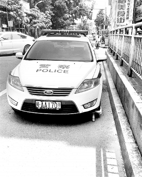 警车乱停也要被锁(网友供图)