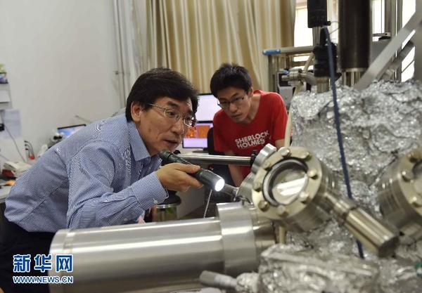 5月30日,薛其坤(左)和他的学生在北京清华大学的实验室里工作。沉浸于量子世界十余载,他既探索如何同量子世界交流,又保持同外界、学界的对话;他说,实验室生活与其说是刻苦,不如说是忘我;当中国科学院院士、清华大学副校长等光环笼罩着他,他更习惯学生叫他“薛老师”;他说,科学发现没有第二,需要争分夺秒,没有退路…… 他是与时间赛跑的物理学家、量子反常霍尔效应的发现者薛其坤。 新华社记者 李文 摄