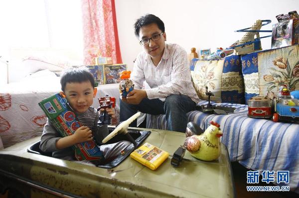 新华社照片,上海,2015年5月31日 收藏童年的“大孩子” 5月29日,王佳鸣与妻子在家中玩具展示柜前合影。王佳鸣从事银行网络监控和维护工作,他和妻子都是“80后”的电影爱好者,也同为电影角色模型的藏家。近年来,一股老玩具收藏的潮流在一些成年人中渐渐流行。从价格不菲的电影模型,到玩具厂仓库里的“压箱货”,这些20世纪80年代甚至70年代生人的“大孩子”们,在收藏老玩具的同时,也收藏着自己的童年。新华社记者 方喆 摄