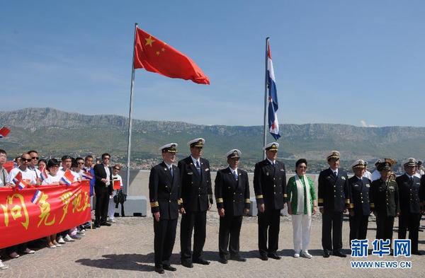 6月1日,中国驻克罗地亚使馆工作人员、华人华侨、中资机构代表在克罗地亚斯普利特的罗拉港欢迎中国海军第十九批护航编队。当日,由导弹护卫舰临沂舰、潍坊舰和综合补给舰微山湖舰组成的中国海军第十九批护航编队抵达克罗地亚斯普利特市罗拉海军基地,开始对克罗地亚进行为期5天的友好访问。这是中国海军舰艇首次访问克罗地亚。新华社记者薛群摄
