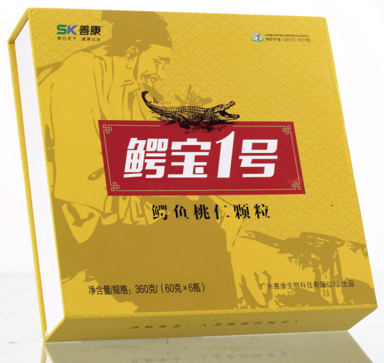 广州善康生物科技有限公司以人工养殖鳄鱼应用于深加工技术开发为重点,集新兴的鳄鱼养殖业、研发、生产于一体,日前已在广州开设国内首家以鳄鱼为主要食材的食疗养生馆。针对心脑血管疾病患者,善康公司从鳄鱼的血液中提取血红蛋白肽,配伍药膳同源的食品级药材桃仁、肉桂、茯苓和薤白,研制出药食同源的食疗产品——鳄宝1号,实现了通过食疗的方法显著改善多种心脑血管疾病,且没有毒副作用,更加安全和彻底。