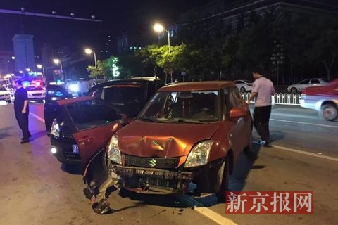 据他回忆,有人在追逐中不停喊“马上停车”,但尼桑轿车并不配合,被其他两辆车在南京北街与北七马路交叉口处包夹逼停后,仍继续驱车撞击前后车辆。