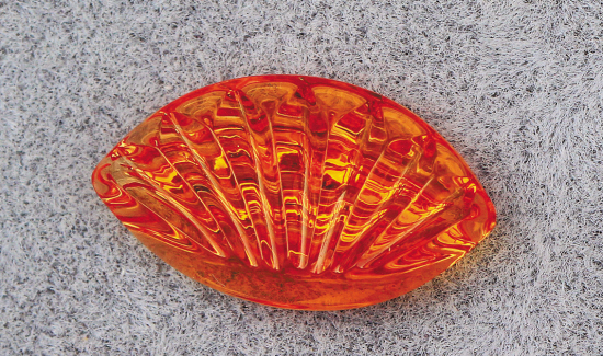 黄清波:锰铝榴石是石榴石宝石族中重要品种之一,颜色从红到橙红,红到棕红,玫瑰红、浅玫红均有,其中以橙红、橙黄为美,橙黄色锰铝榴石是红色系石榴石中最佳品种,行业内称其为“芬达”。