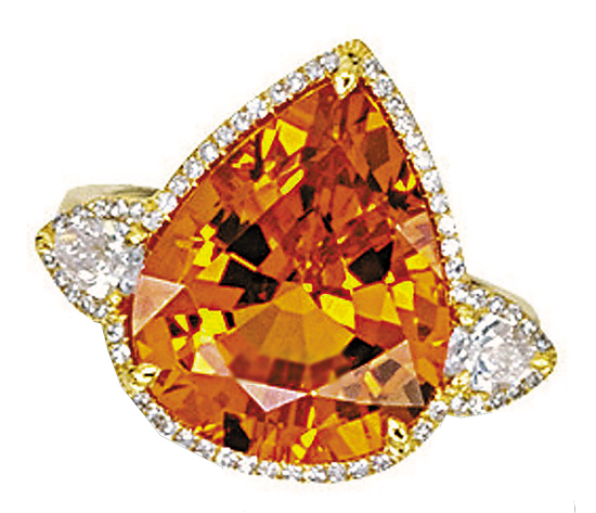0.26卡拉梨形天然芬达石配钻石戒指,2011年香港苏富比拍卖成交30万港元