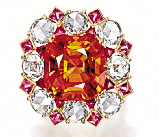 芬达石配粉红色尖晶石及钻石戒指,2013年香港苏富比拍卖成交68.75万港元