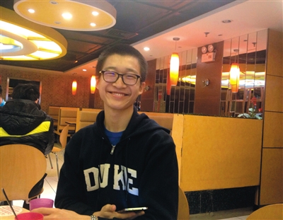 人大附中高三学生于寒。他已被美国杜克大学录取,今天不会参加高考。