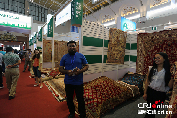 参加第三届中国-南亚国家博览会的巴基斯坦地毯经销商 摄影:高宇