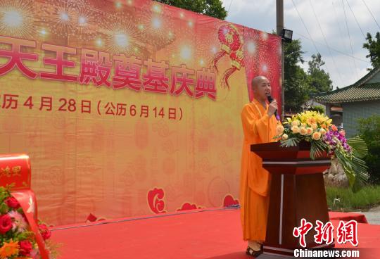 图为普福禅院主持释来德大和尚在普福禅院天王殿奠基仪式上讲话。 宋秀杰 摄