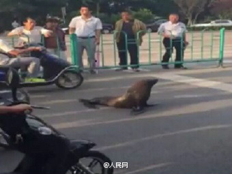 日前,江苏一海洋馆的海狗趁驯养员不注意,偷偷跑了出来,在南通大街上溜达,引来围观。