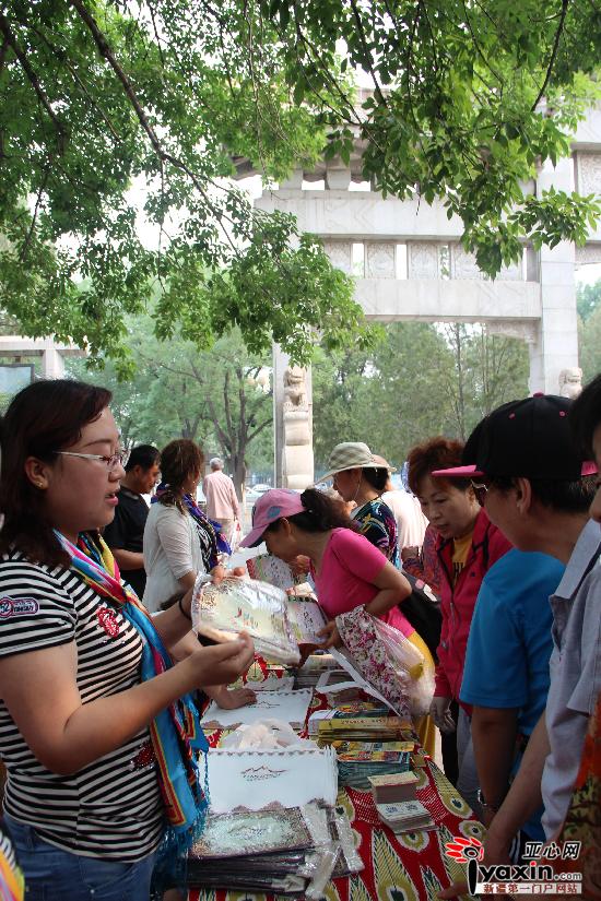 工作人员给市民介绍抽奖的新疆小礼品。