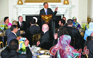 22日,美国总统奥巴马在白宫举行斋月宴会宴请穆斯林人士。