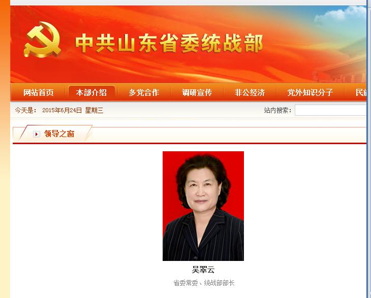吴翠云(女)任山东统战部长 颜世元不再担任(图/简历)