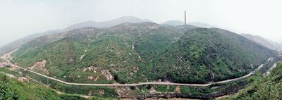 洞子就在10多公里外的江东,藏在那个其貌不扬的“馒头山”(学名“金子山”)中。老人视线的焦点,也是唯一能望见的标志——一根高出山顶150米的排风烟囱。