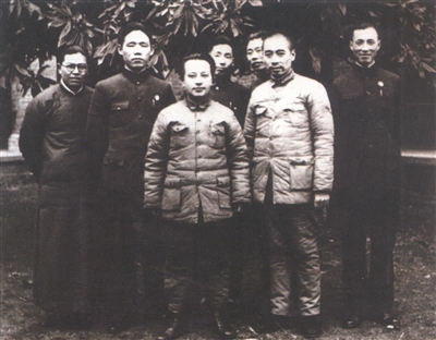 1938年3月,任第六战区副参谋长的张克侠(左4)与周恩来(左6)等在武汉八路军办事处合影。