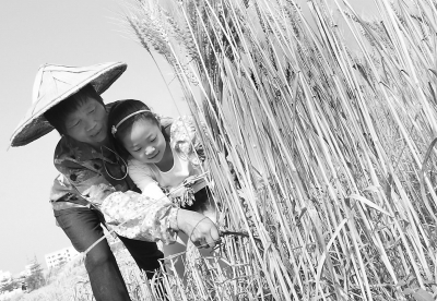 2013年开始,韩日花在山城镇三卞村开拓了一片荒地,自己种麦子。今年麦子收成,几个亲戚朋友也来帮她收割。一天的辛勤劳作,韩日花的麦田竟收获了200多公斤麦穗。