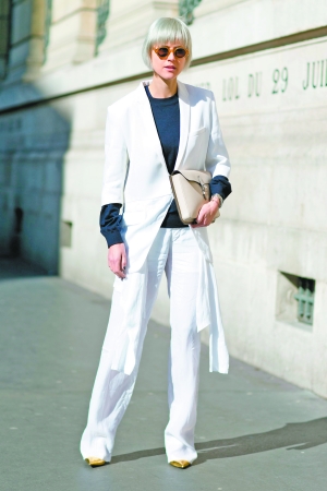上下身都用白色打造的整体造型,是本季最热门的搭配术,有让人瞬间提气、脸色变亮的效果。亚洲人的肌肤在夏天略微晒黑之后,在全白的衬托下能够显得健康又清爽。