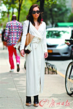 在与白色的所有搭配中,黑白配绝对稳占帅气度首位。无论是内搭还是外披,黑色都能给膨胀感强的白色以最好的收敛辅助,担心穿一身白色会显胖的姑娘们,来个黑白配就万事无忧啦。