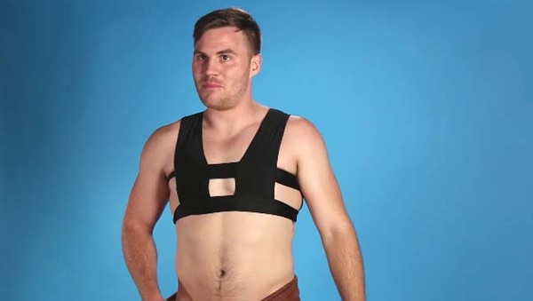 外国男子试穿性感比基尼 感叹女人不容易(组图)