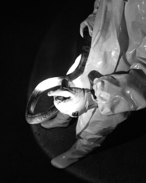 “我就觉有什么东西在碰我,凉丝丝的。我开始以为是错觉,但很快感觉这东西在蠕动,仔细听还有‘咝、咝’声响。我发现这东西还主动往我身上靠,用手一抓,像根绳子,滑溜溜的,我的心一下子到提到嗓子眼了!”刘香胡乱中跳下床开灯一看,蛇有一米多长,花纹斑斓,正吐着芯子……