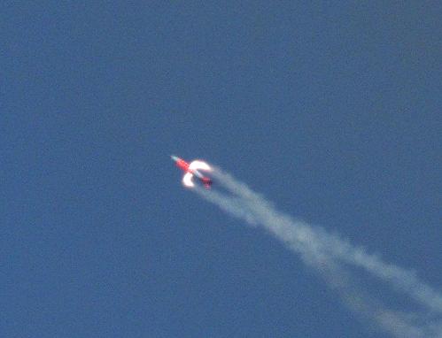 照片局部放大,可见B61-12核弹投下后启动了向侧面喷射的小型火箭发动机,可能是起旋发动机,类似制导火箭炮的技术