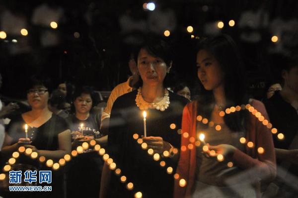 2014年7月19日,在马来西亚吉隆坡,民众手持蜡烛悼念马航MH17空难罹难者。 新华社发(张纹综摄)