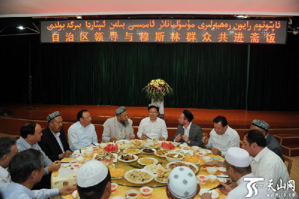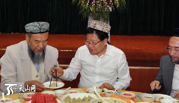 7月17日,张春贤与各族穆斯林群众共进开斋饭。卢民一摄
