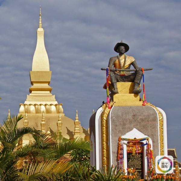 老挝首都万象标志性建筑塔銮与赛塔提腊王(1534–1572)雕像,澜沧王国赛塔提腊王在位期间将首都由琅勃拉邦迁往万象。(图片来源:互联网)