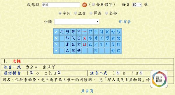 我国台湾方面的字典依然将“老挝”的发音标为“老抓”。(图片来源:网站截图)