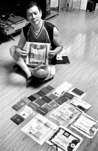 海都讯 64岁的福州依伯杨文海是一个“老兵”,年轻时曾在黑龙江当过6年空军。从1984年开始,他着手收藏解放初期到上个世纪八十年代的军人证件及军属证明书,至今已经有300多件。昨天,在福州仓山的一个小区里,他向记者展示了他的一部分藏品。