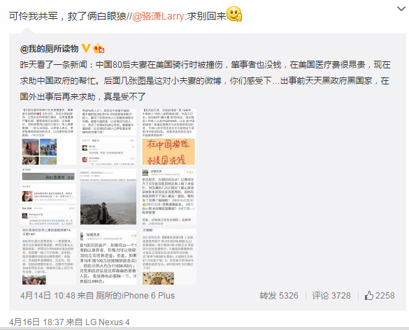 今天下午,多名网友在微博发消息称,威海青年@侯聚森-侧卫36 因为发表爱国言论,被人在校门口群殴受伤,并贴出了其受伤的照片。该消息很快在微博上传播和转发。