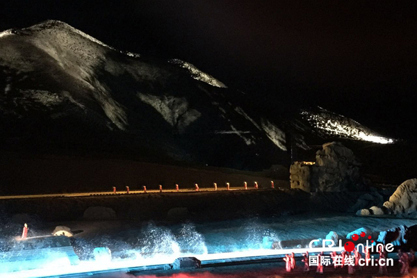 国际在线消息(记者 徐雅平):“天下没有远方,人间都是故乡”,优美的歌声,加之以拉萨自然山水为背景的高科技声光舞美技术,7月23日晚,大型实景剧《文成公主》震撼的表演、让参加全国网络媒体西藏行记者们叹为观止。