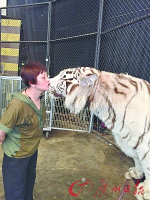 闲暇时,苏桂荣喜欢与白虎、狮子玩耍。随着时间的流逝,她最喜爱的白虎托尼也已开始步入“老年”,虽然托尼很少再参加表演,但苏桂荣仍跟往常一样与它玩耍,喂它最喜欢吃的食物,她表示会一直陪伴托尼到终老。![]()