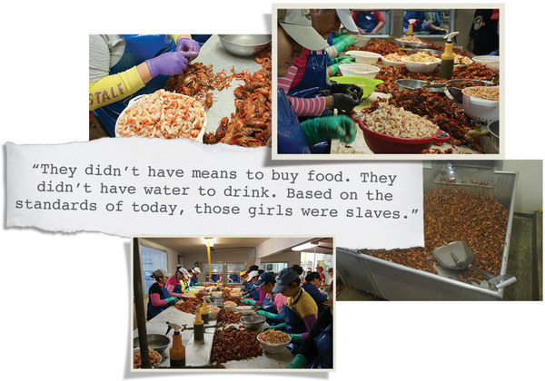娃尔德兹和冈萨蕾丝说,她们来自墨西哥,以美国H-2签证到韦斯特的农场里工作,与她们一起工作的还有大约20名墨西哥女子。她们和另外3名年轻女子被安排在单独的一间拖车房中居住,屋子里肮脏、难闻,有老鼠和臭虫,没有干净的饮用水。她们的工作是给烫热的小龙虾剥皮,“手指常被烫伤”,而最难忍的还是工作时“刺鼻的气味”。