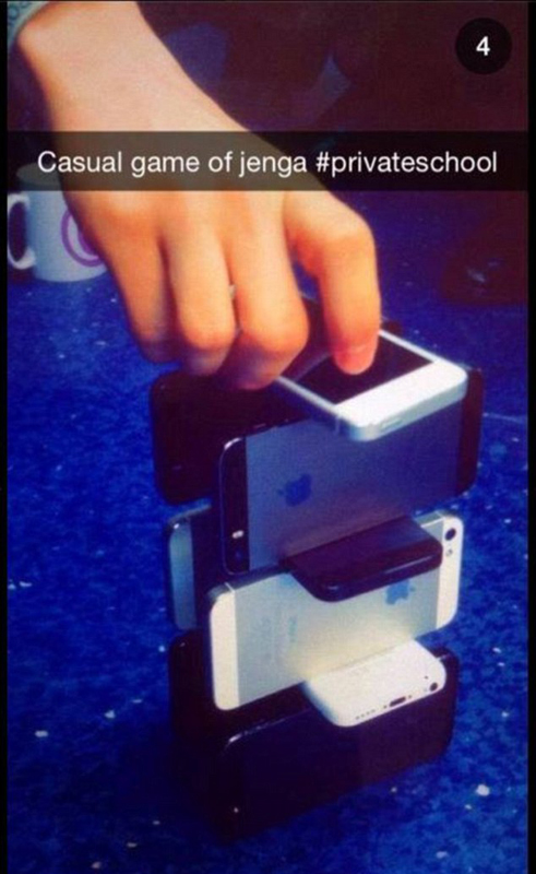 一群学生分享的照片,利用他们的iPhone玩层层叠游戏。(网页截图)