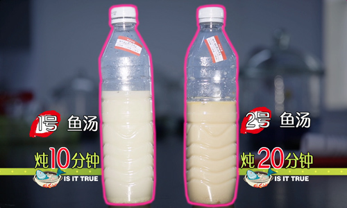 那么,鱼汤越白脂肪含量越高究竟是真是假呢?央视“是真的吗”记者动手炖鱼汤作为检测样本进行实验检测。
