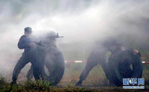 组图:广西武警特战练兵 持枪跳十层高楼