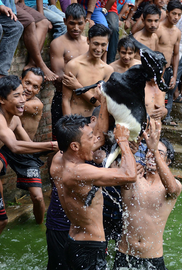 尼泊尔德坡卡锐节传统庆典:年轻人手撕活山羊献祭(组图)