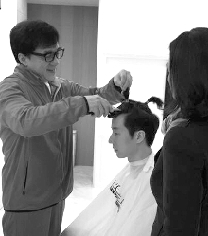 去年8月房祖名吸毒被捕,判刑6个月,出狱后回家第一天,成龙亲自帮他剪发,从头再来。
