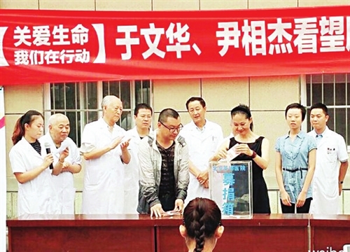 尹相杰与老搭档于文华为脑瘤患者捐款