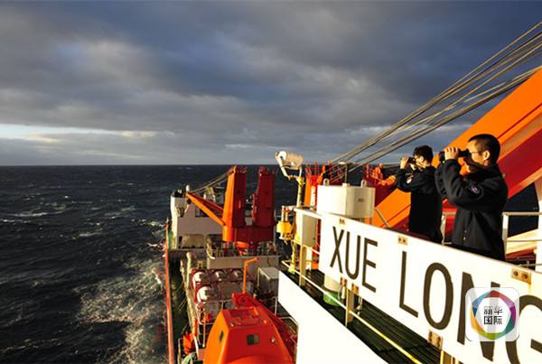 3月28日,“雪龙”号科考船的工作人员手持望远镜观察海上情况。(新华社记者张建松摄)