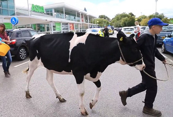 英国农民牵奶牛进超市 抗议奶价下跌(组图)