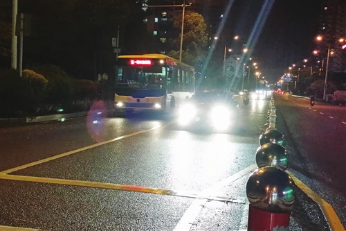雨天夜晚一些车辆开启远光灯,特别刺眼