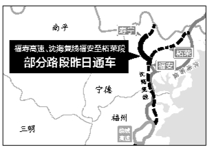 此外,沈海复线福安至柘荣段部分路段昨日12点也已通车。据介绍,此次通车的路段为坂中互通至康厝互通段,这段路将宁(德)上(饶)高速、福寿高速公路连接起来。福州市民如果驱车去寿宁,可全程高速,走沈海高速、宁上高速、沈海复线福安至柘荣段通车段、福寿高速,不到3小时可到达。