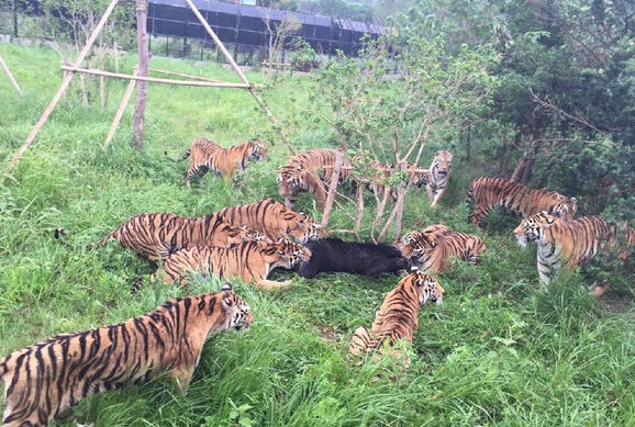 上海野生动物园十余只老虎围攻咬死黑熊(图)