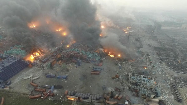 天津滨海新区发生剧烈爆炸 航拍爆炸现场(高清组图)