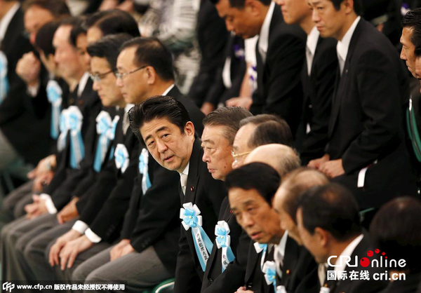 当地时间2015年8月15日,“全国战殁者追悼仪式” 在日本东京武道馆举行。 当日是日本宣布无条件投降70周年纪念日,日本政府在日本东京武道馆举行“全国战殁者追悼仪式”。日本首相安倍晋三与天皇夫妇出席仪式。图片来源:TORU YAMANAKA/CFP